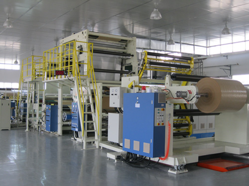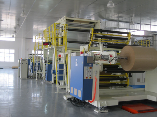 為更好滿足和提供客戶各種淋膜涂硅紙的解決方案,豐富和完善涂硅紙的產品線,福泰公司雙面淋膜線于2013年3月份成功投產,此條淋膜線關鍵部件為進口部件,這樣可以充分保證產品質量的良好和穩定,同時在線采用雙淋膜頭,保證雙面淋膜一次成型。此條線預計產能800噸/月,淋膜寬度1650毫米,PE淋膜克重8克/平方米,同時此條淋膜線配備在線單色印刷,可以為客戶定制生產起其指定的文字和標志等。