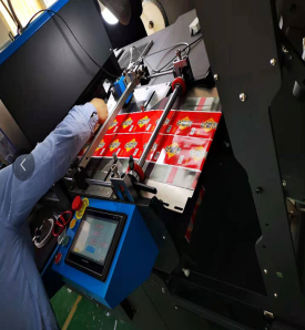 他們對于模內標完全是新的開始,印刷使用的是間歇式膠印,印刷的過程中還是有問題的,印刷機的速度、UV燈的功率設定在一定程度上影響了產品的套印精度。后續還要從印刷的色序、印刷單元調整、UV燈溫度控制、整體設備分段張力等方面做進一步的調整,來達到適合自己的最佳工藝。當然,印刷過程中的靜電控制,也非常重要,后道的抗靜電光油,印刷過程的靜電處理,都要引起重視。