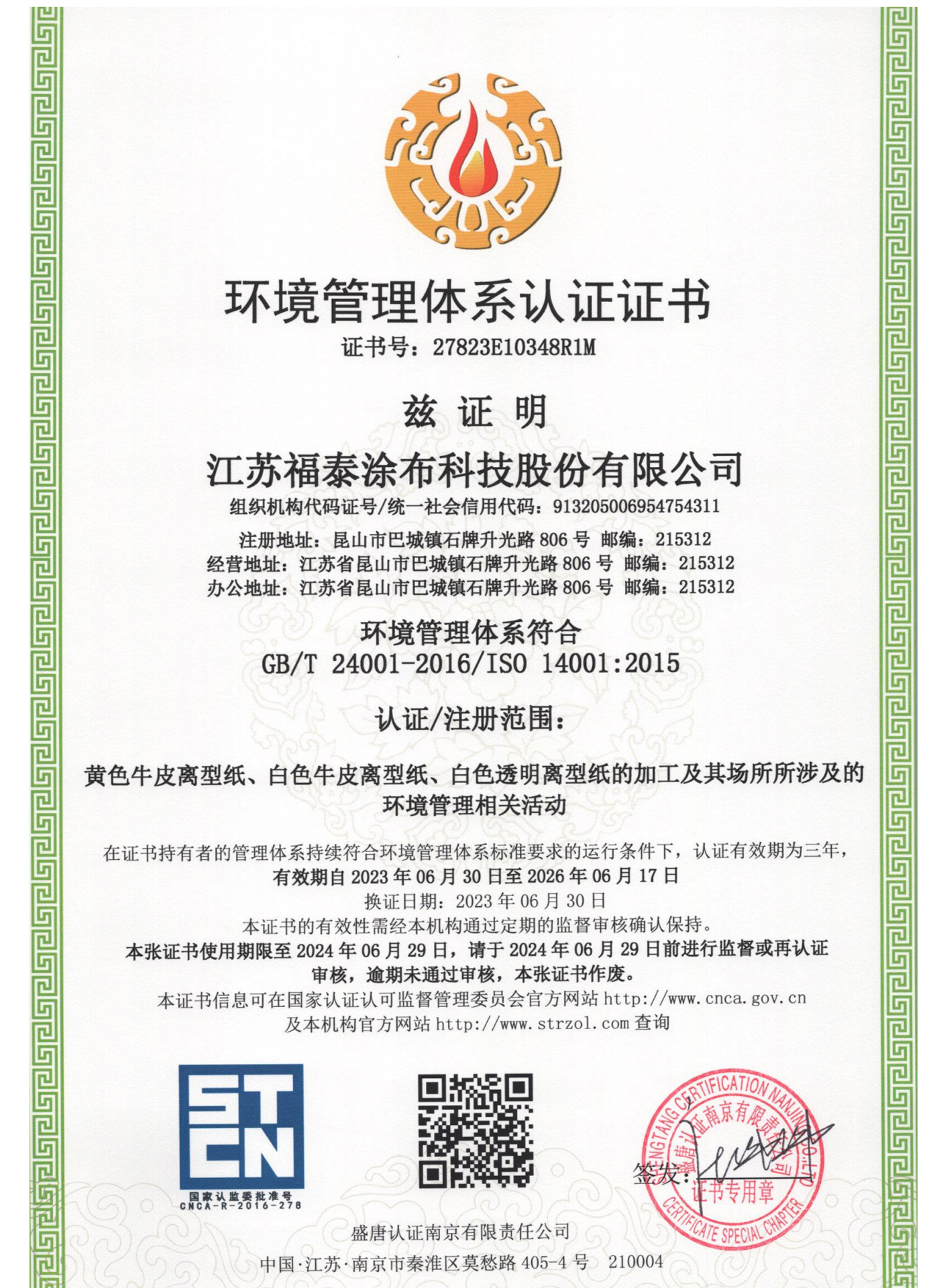 ISO14001證書